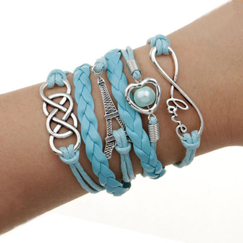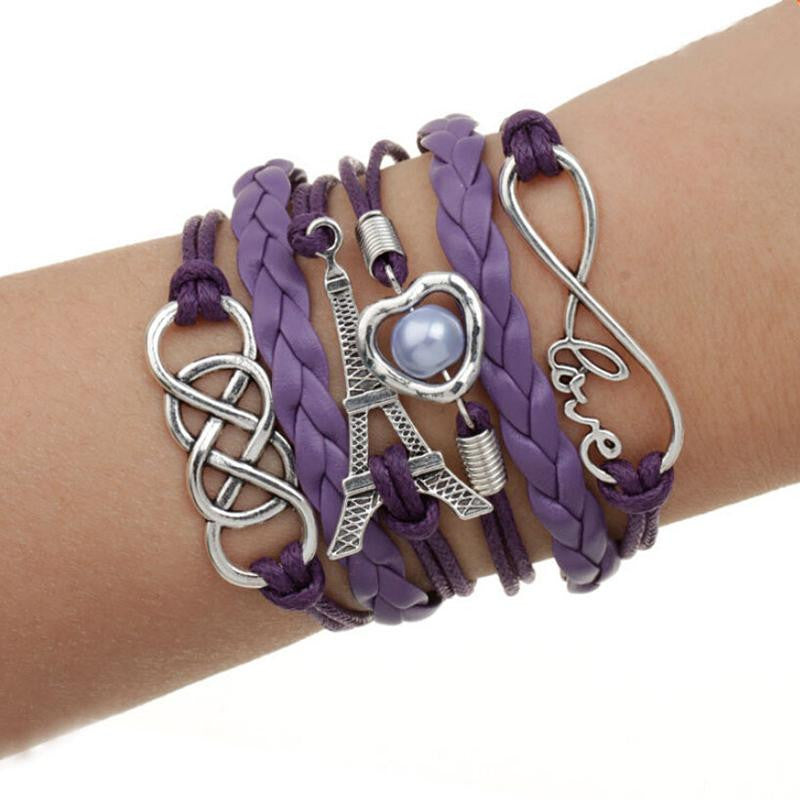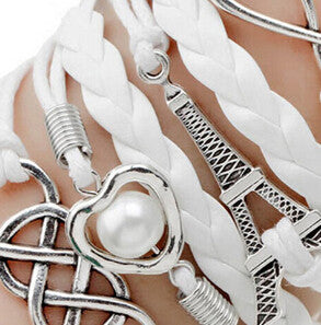 Factory Price Heart Eiffel Tower Bracelet Jewelry S PU Leather Pearl Double Infinite Multilayer Bracelets J4U66