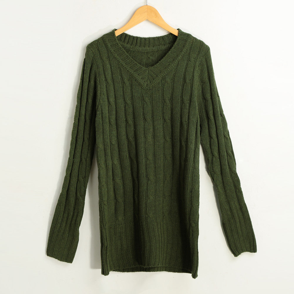 fall women sweaters and pullovers ol knitted sweater solid ribbed v neck long sleeve casual longline jumper sweater mujer J4U66