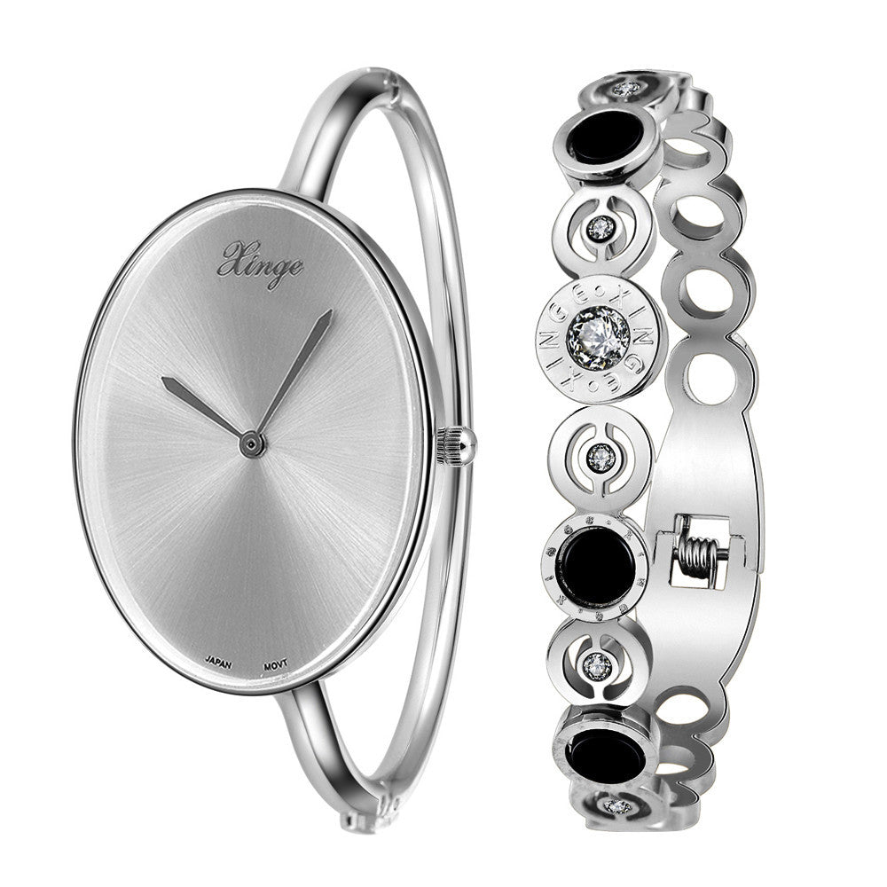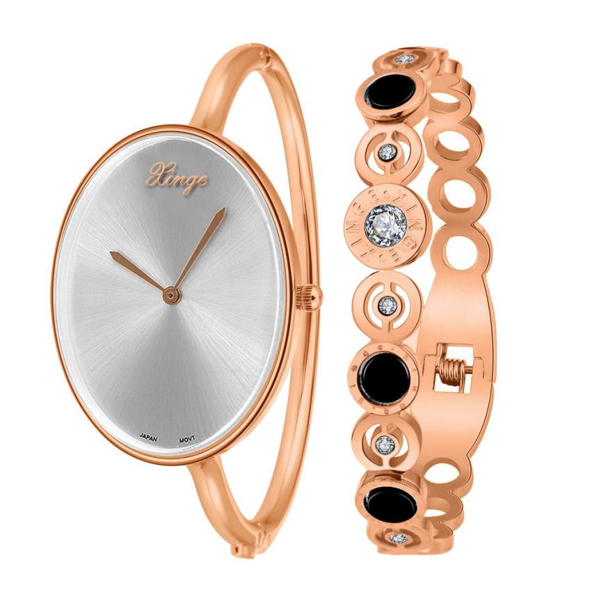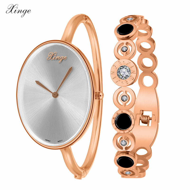 Famous Brand Women Rose Gold Silver Rhinestone Bangle Watch And Bracelet Set Women Ladies Casual Quartz Watch D3677 J4U66