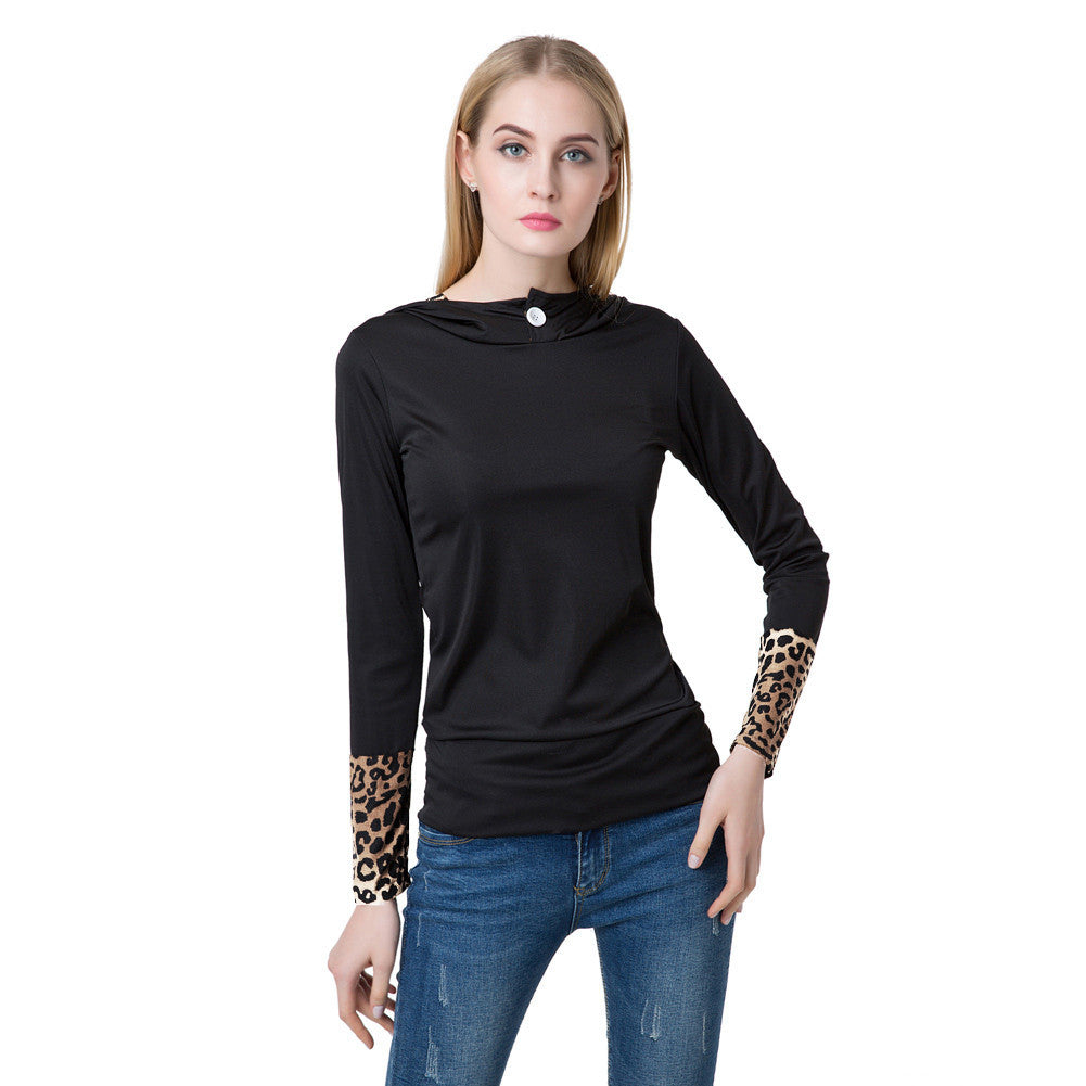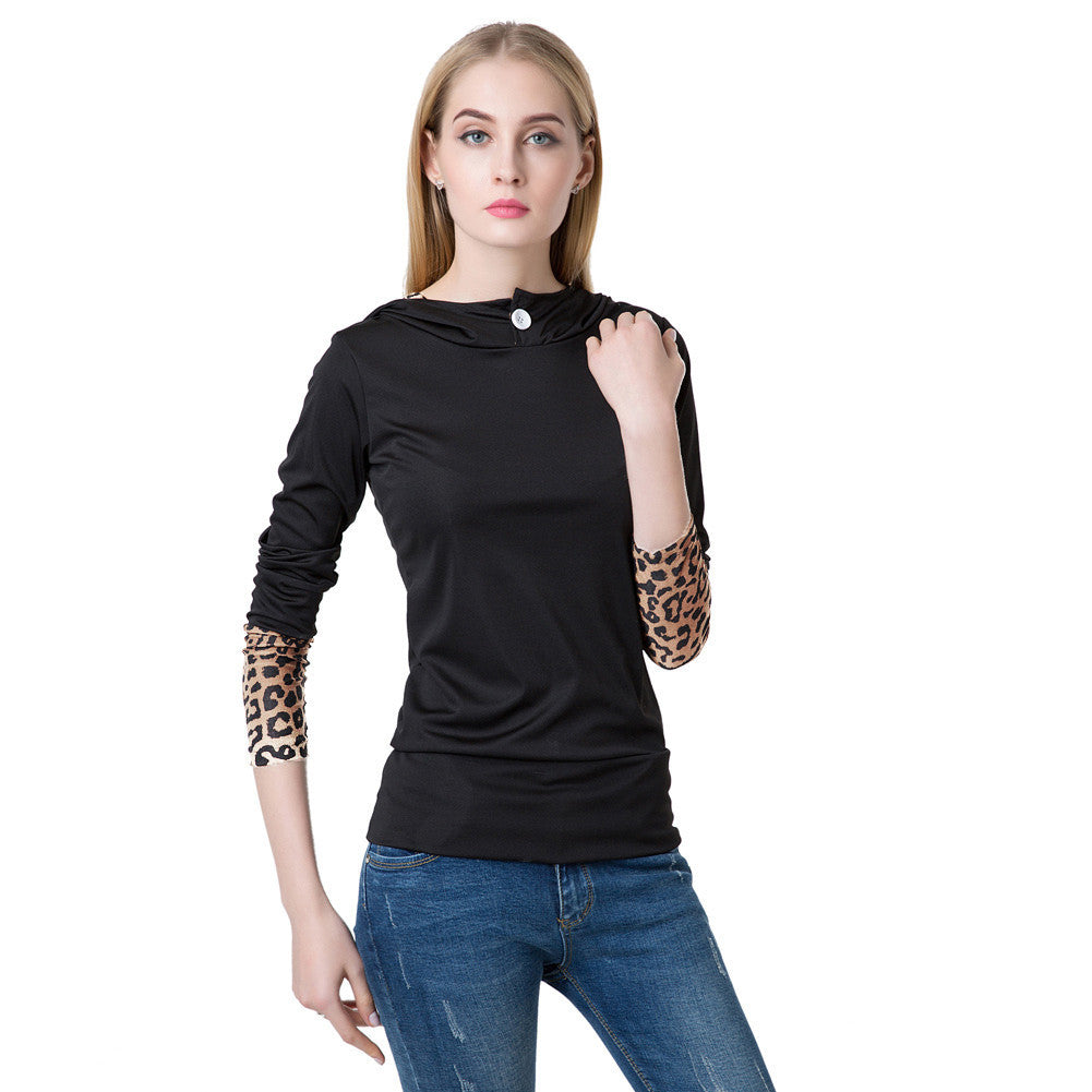 fashin women sweatshirt long sleeve leopard print hoodies plus size causal tops loose hoodie tracksuit black J4U66