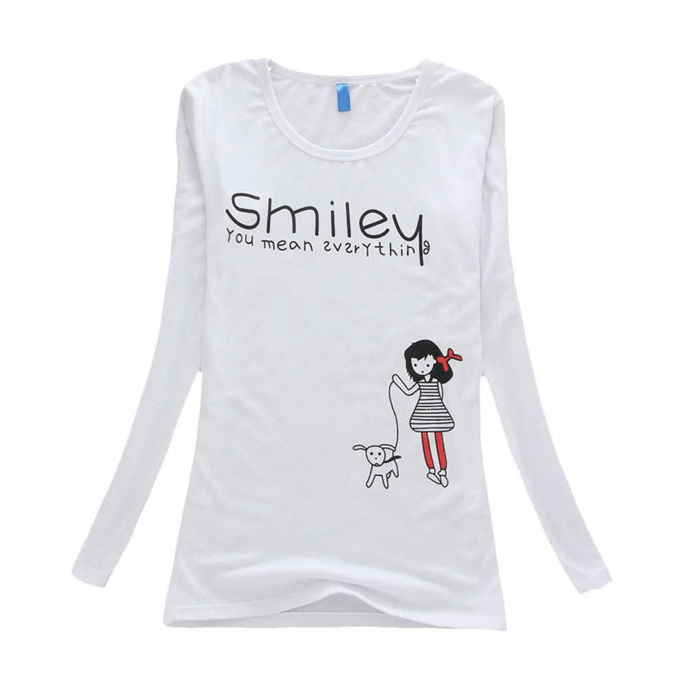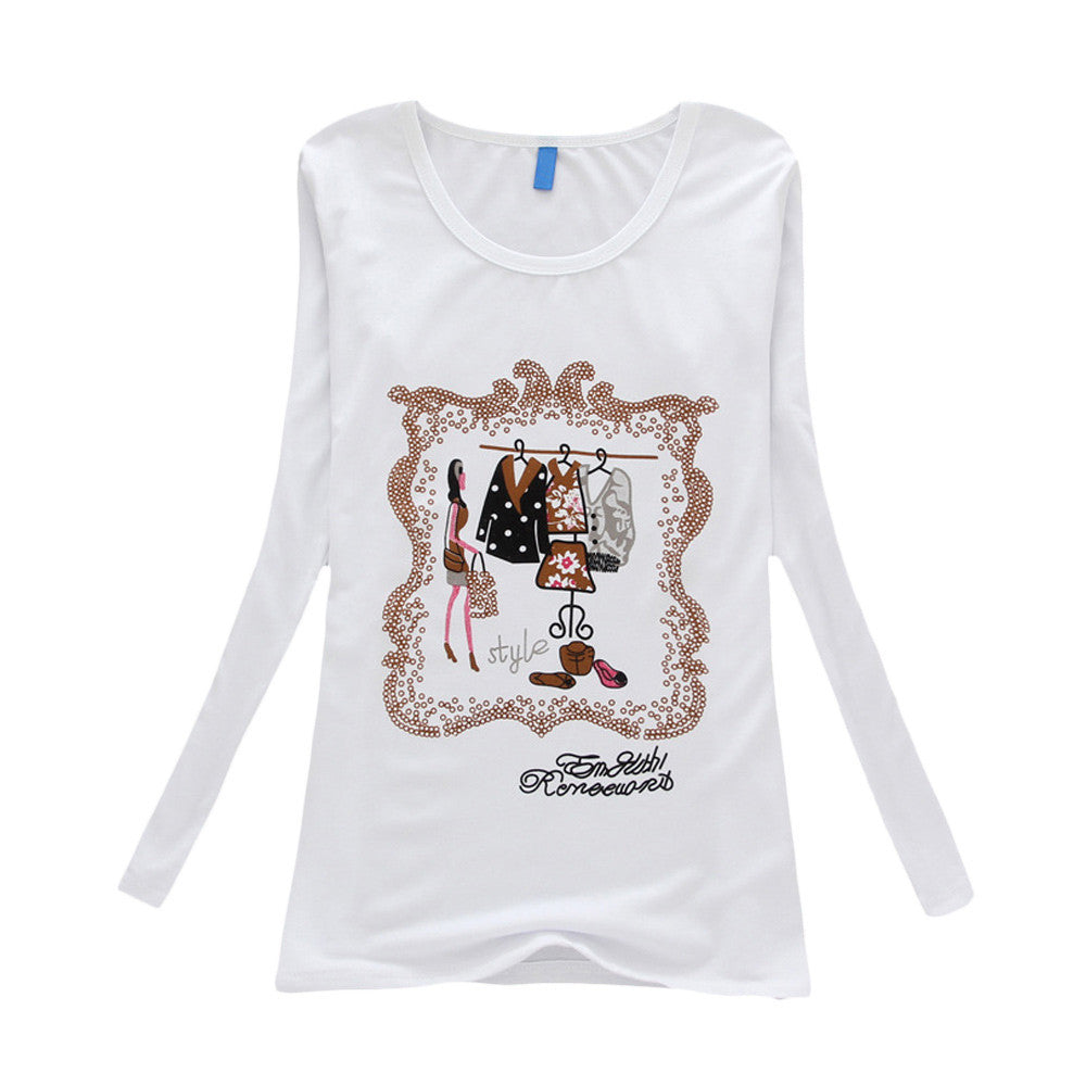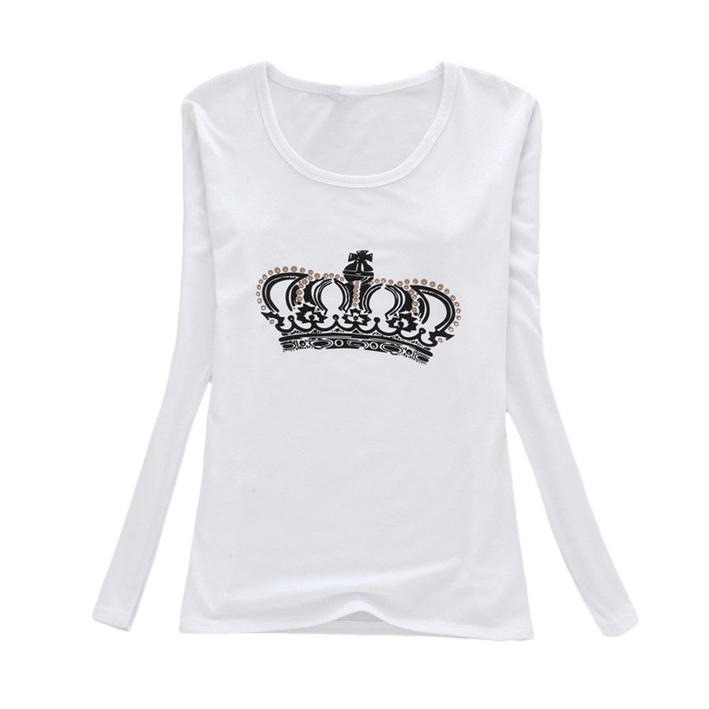 Fashion Brand Women T Shirt Casual Long Sleeve Rivet Clothing Round Neck Collar Tops Tees J4U66