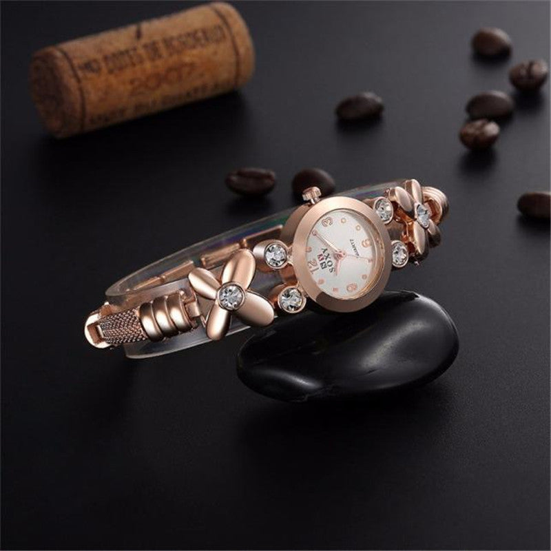 Fashion Daisies Flower Women Watch Rose Gold Bracelet Wrist Watch Women Girl Dress Clocks J4U66