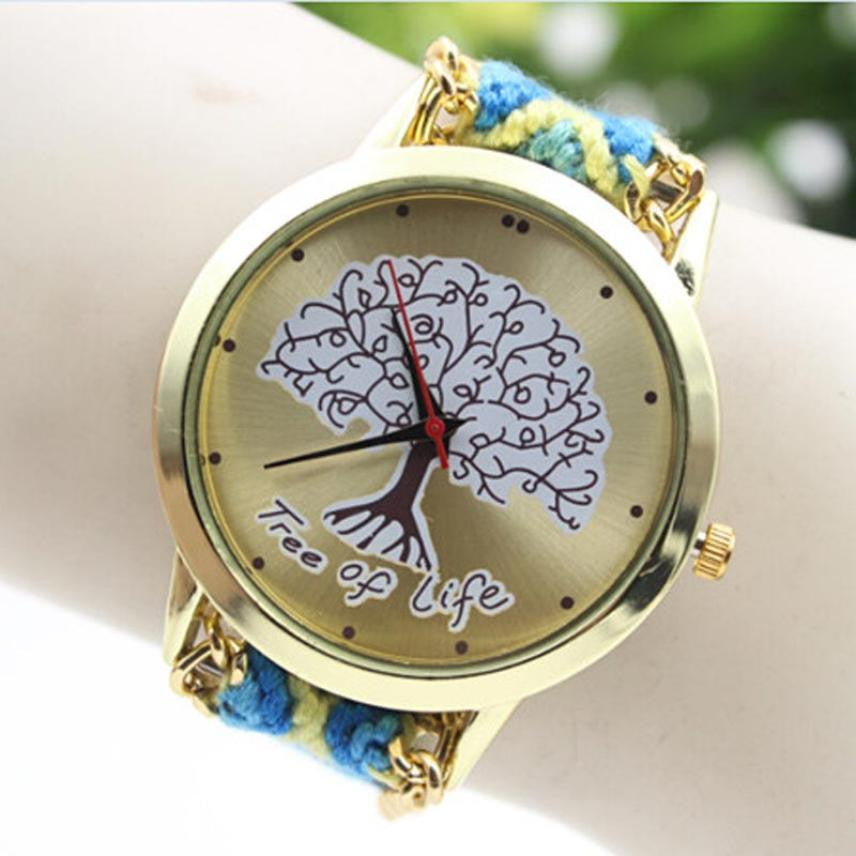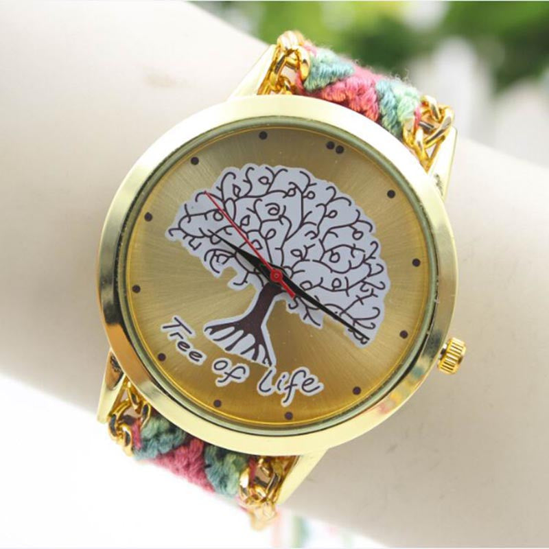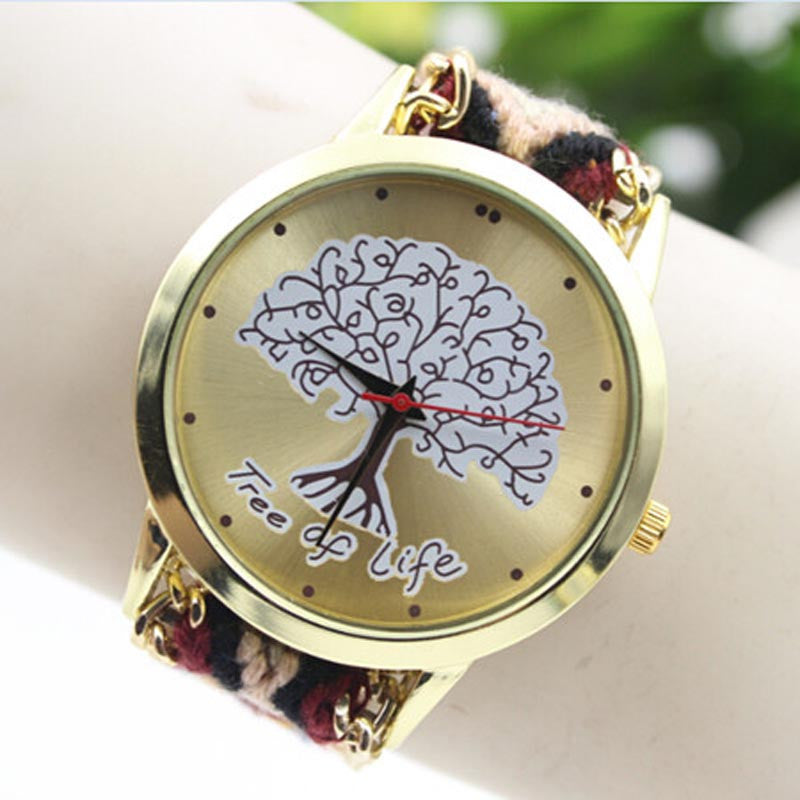 Fashion Ladies Women Tree Of Life Pattern Bracelet Watch Knitting Dial Quartz Watch J4U66