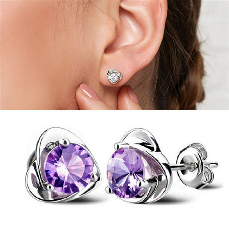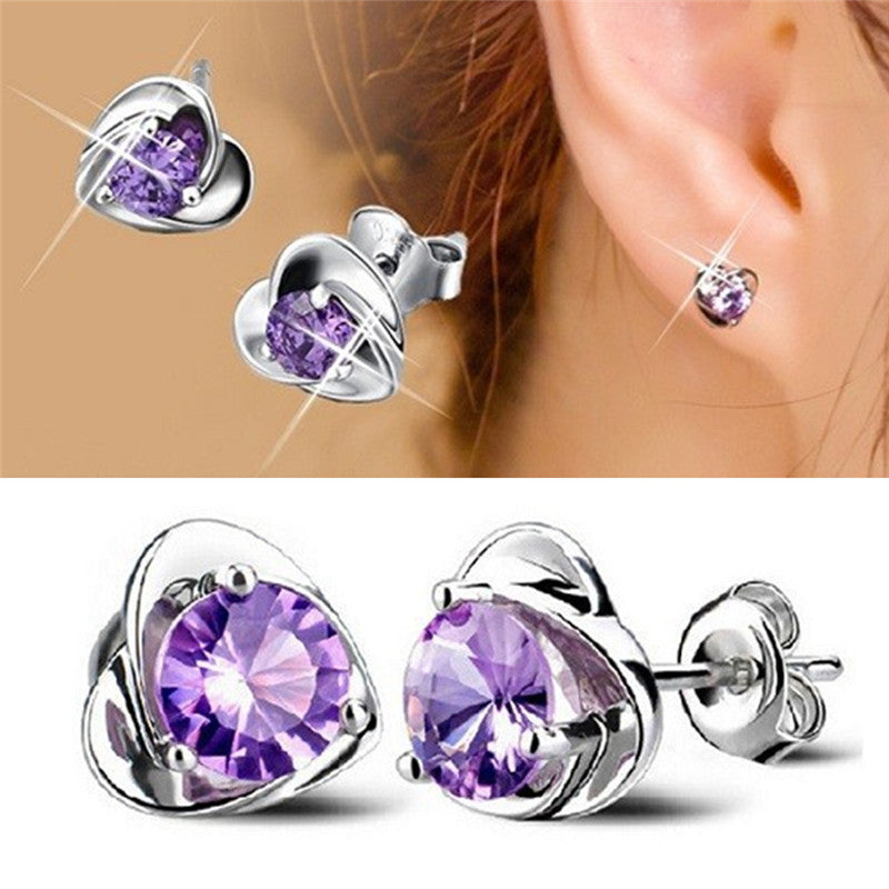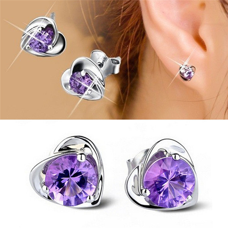 Women Lady Elegant Silver Plated Ear Stud Earrings Heart Gift J4U66