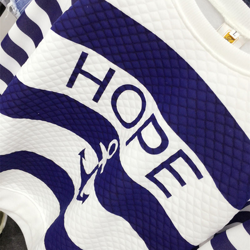 Women Long Sleeve Anchor Printed Hoodies Striped Causal Letter Women Pullover Sweatshirts Tracksuits Suit Tops S-XL J4U66
