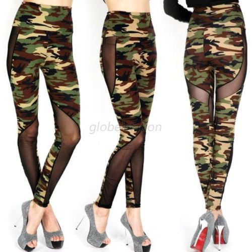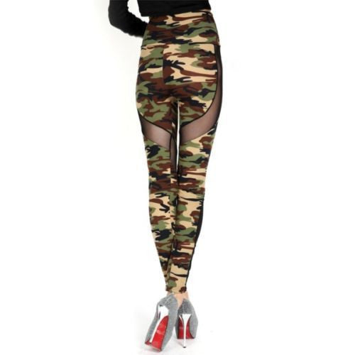 Women Sexy Mesh Camouflage Leggings High Waist Patchwork Stretchy Slim Army Camo Leggings Leggings J4U66