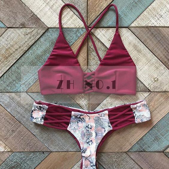 womens style bikini sets red wine retro bikini suit sexy weave bohemian beach swimming wear n04zn1 J4U66